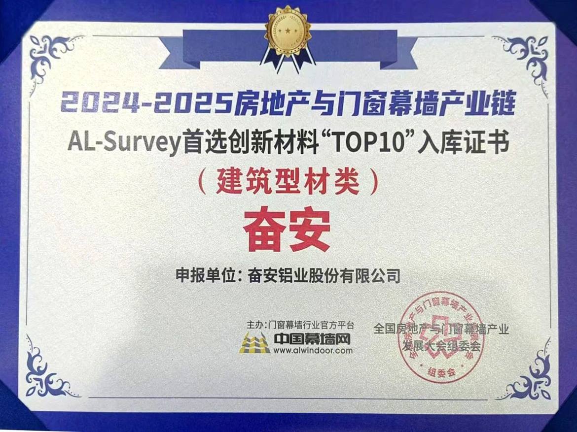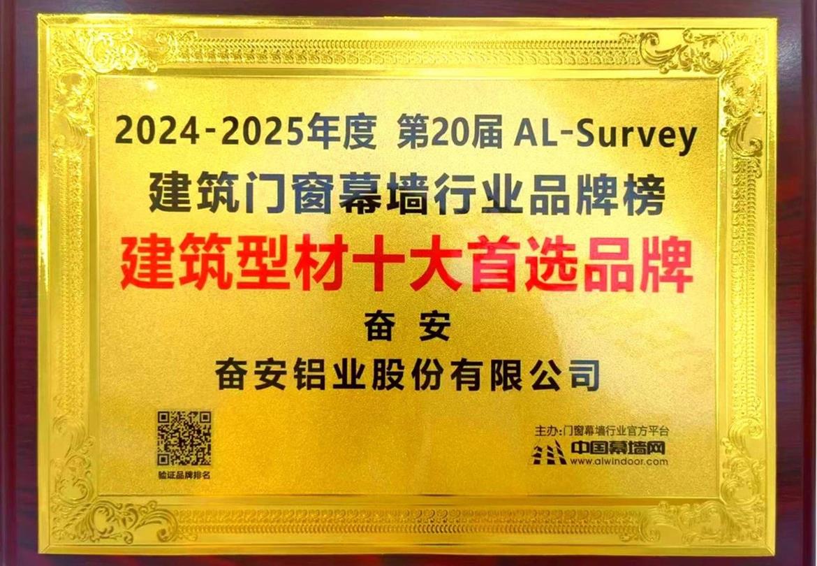 รายชื่อแบรนด์ AL-Survey สำหรับประตูอาคาร หน้าต่างและผนังม่าน อุตสาหกรรมนี้จัดขึ้นมาแล้ว 20 ครั้งตั้งแต่เริ่มก่อตั้งจนถึงปี 2025 และมีอำนาจและอิทธิพลอย่างมากในอุตสาหกรรมประตู หน้าต่าง และผนังม่าน ผู้จัดการด้านวัสดุและต้นทุนซึ่งเป็นตัวแทนของบริษัทผนังม่าน "TOP 20" บริษัทประตูและหน้าต่าง "TOP 10" และบริษัทอสังหาริมทรัพย์ "TOP 10" ดำเนินการประเมินและให้คะแนนตามมิติต่างๆ เช่น คุณภาพของผลิตภัณฑ์และระดับการบริการ ในขณะเดียวกัน ข้อเสนอแนะจากผู้เชี่ยวชาญในอุตสาหกรรม สมาคมระดับจังหวัดและเทศบาลเกี่ยวกับมูลค่าแบรนด์และชื่อเสียงในอุตสาหกรรม รวมถึงการประเมินจากสถาบันการออกแบบที่ครอบคลุมและบริษัทที่ปรึกษาเกี่ยวกับนวัตกรรมทางเทคโนโลยีและโซลูชันที่จัดทำขึ้นก็ถูกรวบรวมไว้ด้วยเช่นกัน