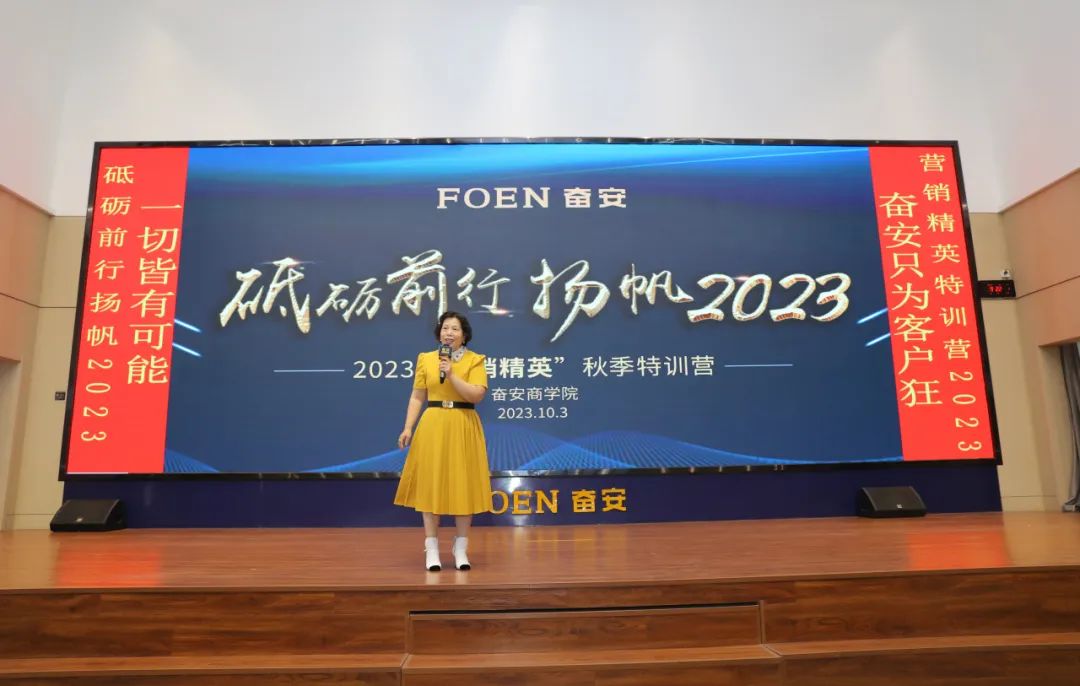 เพื่อสร้างทีม Fen'an Marketing Iron Army ที่ทุ่มเท มุ่งมั่น มีประสิทธิภาพ และยอดเยี่ยม ให้บริการลูกค้าได้ดีขึ้น และบรรลุเป้าหมายการทำงานในปี 2023 บริษัทของเราจึงจัดค่ายฝึกอบรมพิเศษ "Marketing Iron Army" National Day สำหรับ Fen'an 2023 ที่ Fen'an Business School ตั้งแต่วันที่ 3 ถึง 4 ตุลาคม ผู้เชี่ยวชาญการตลาดจากทั่วประเทศเข้าร่วมค่ายฝึกอบรมพิเศษนี้